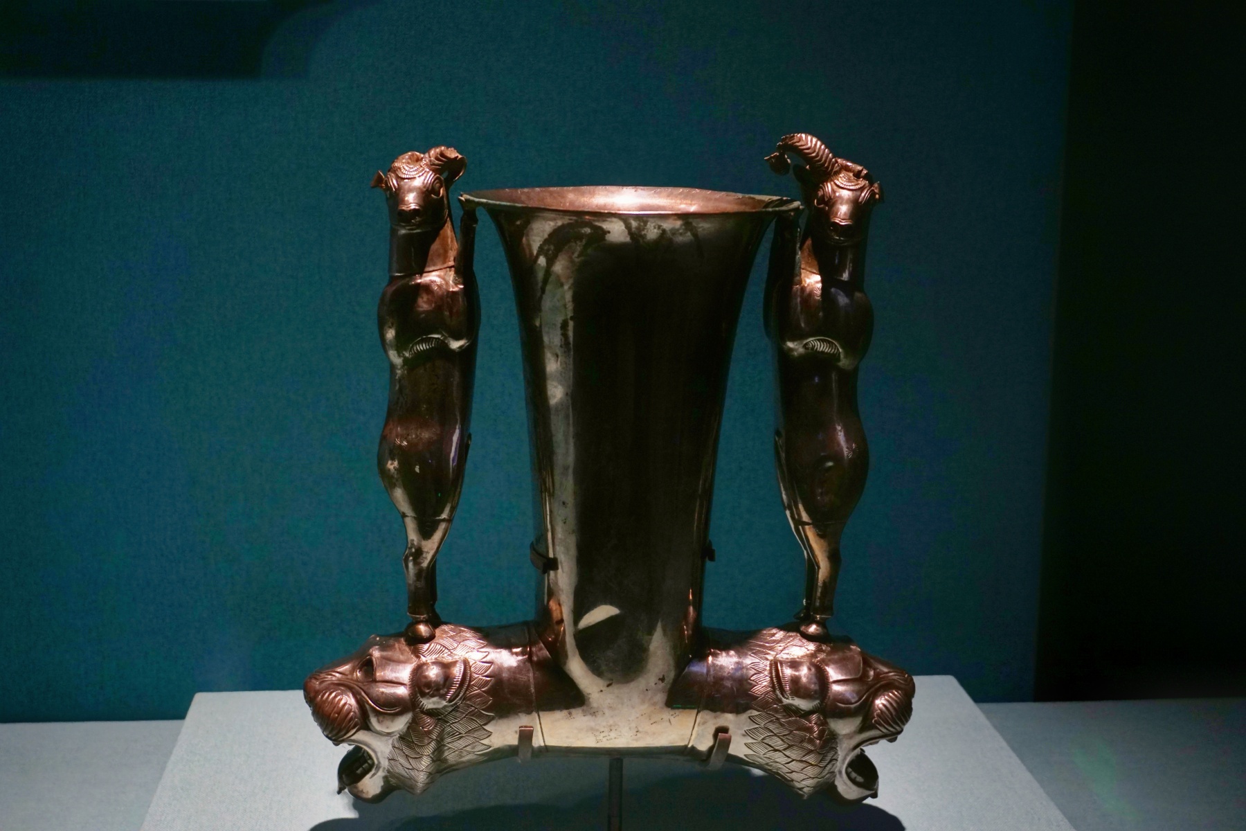 这个来通杯内刻有楔形文字铭文:“萨玛提国王安皮里什,达巴拉之子”。这件来通杯无法直立放置,宴饮时需要仆从一直捧杯侍奉,以彰显拥有者的尊贵身份。
