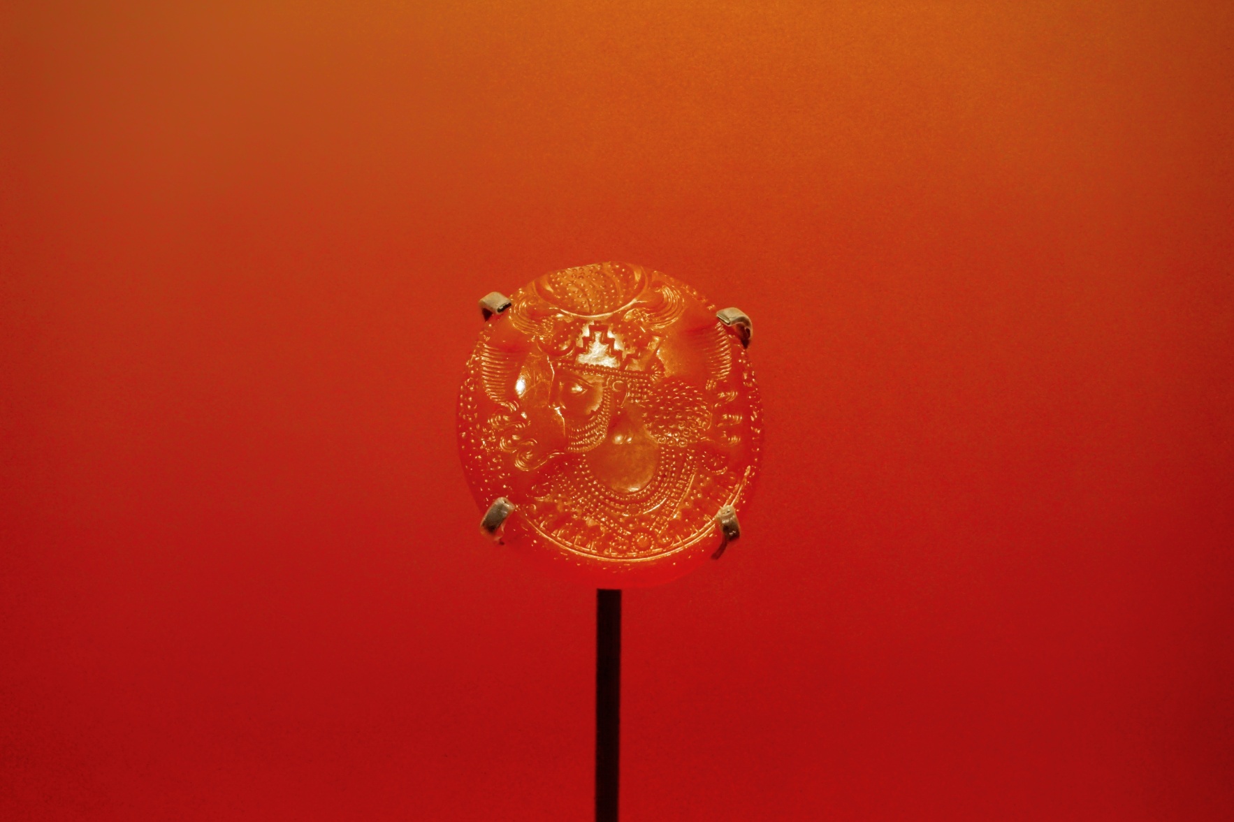 萨珊王朝时期留存下来的带有国王形象的皇家印章极为罕见,而这颗大型红玛瑙印章因其尺寸大、雕刻精铭文长而尤为珍贵。