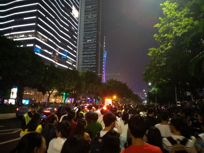 回去过程也是千难万难,我们出了地铁口之后最近的珠江新城站,APM线穿越花城广场的几个站,都已经封闭,只得步行前往体育西路站。