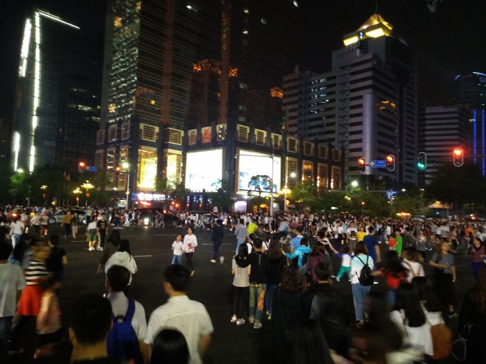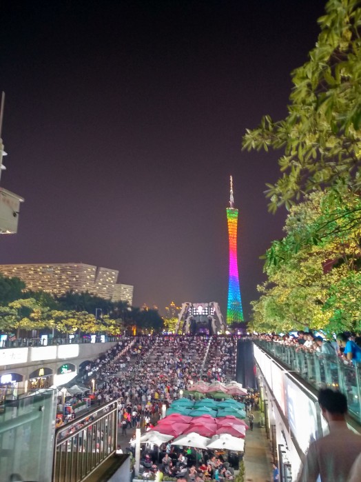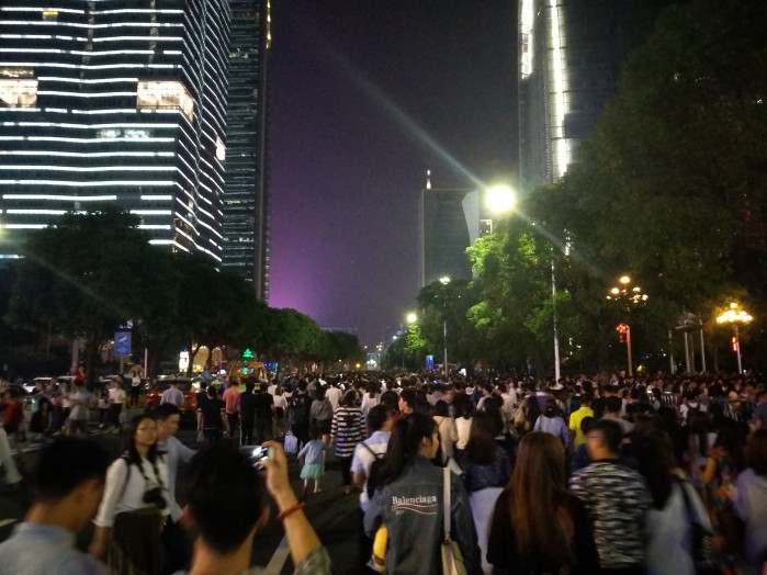 去的时候都是一路人潮汹涌,好不容易到了花城广场,却被保安告知,因为人太多,灯光表演已经提前结束,让我们回去吧。