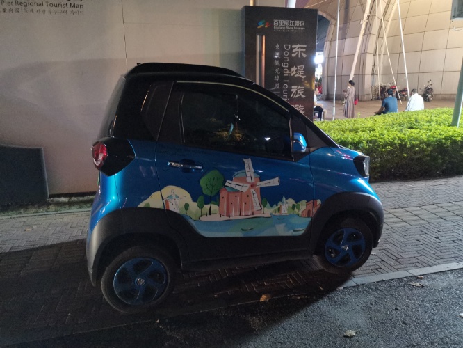 快到江边售票点的时候,看到这个车,得说一下,目前柳州这样的车非常多,到处都能见到。电动的,百来公里续航非常适合城市通勤。传统的一个车位能放这下两部这样的车,超轻巧。