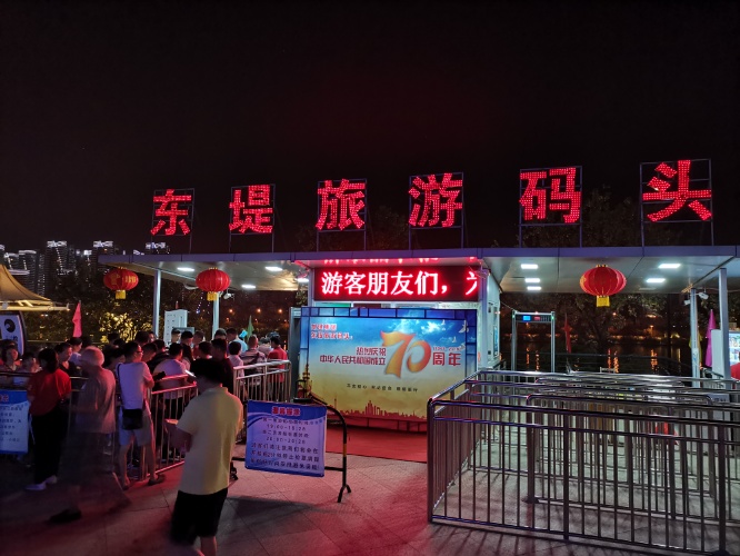 这是叫柳江东堤,这里排队只是安检,下去还要再排队