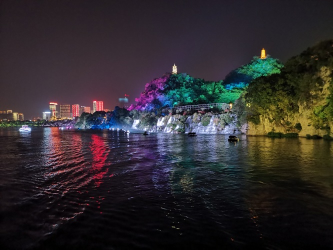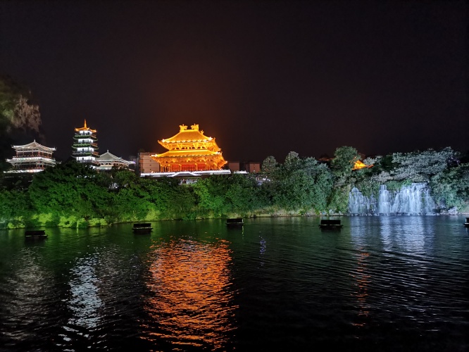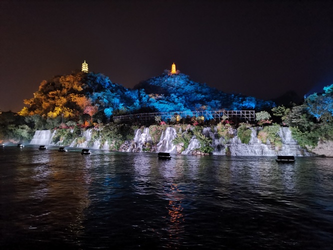 准备到瀑布群之前,先看到了提岸边的亮化夜景带