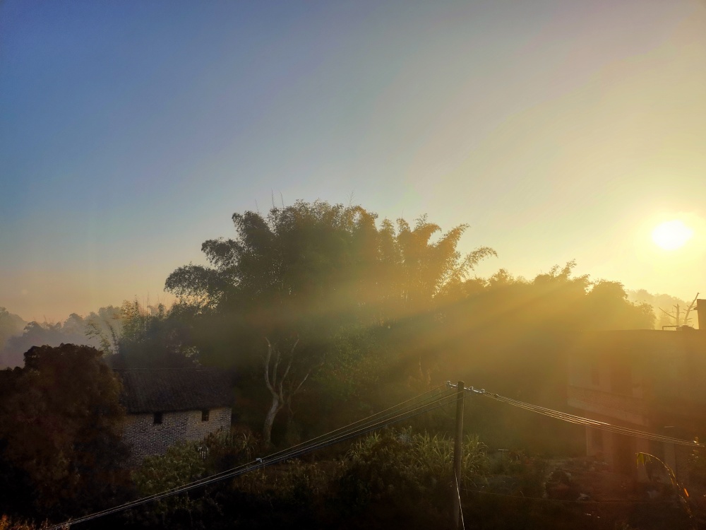 这是今天大年三十,除夕早上时,站在自家楼顶趁朝阳明媚时拍下的一张照片。