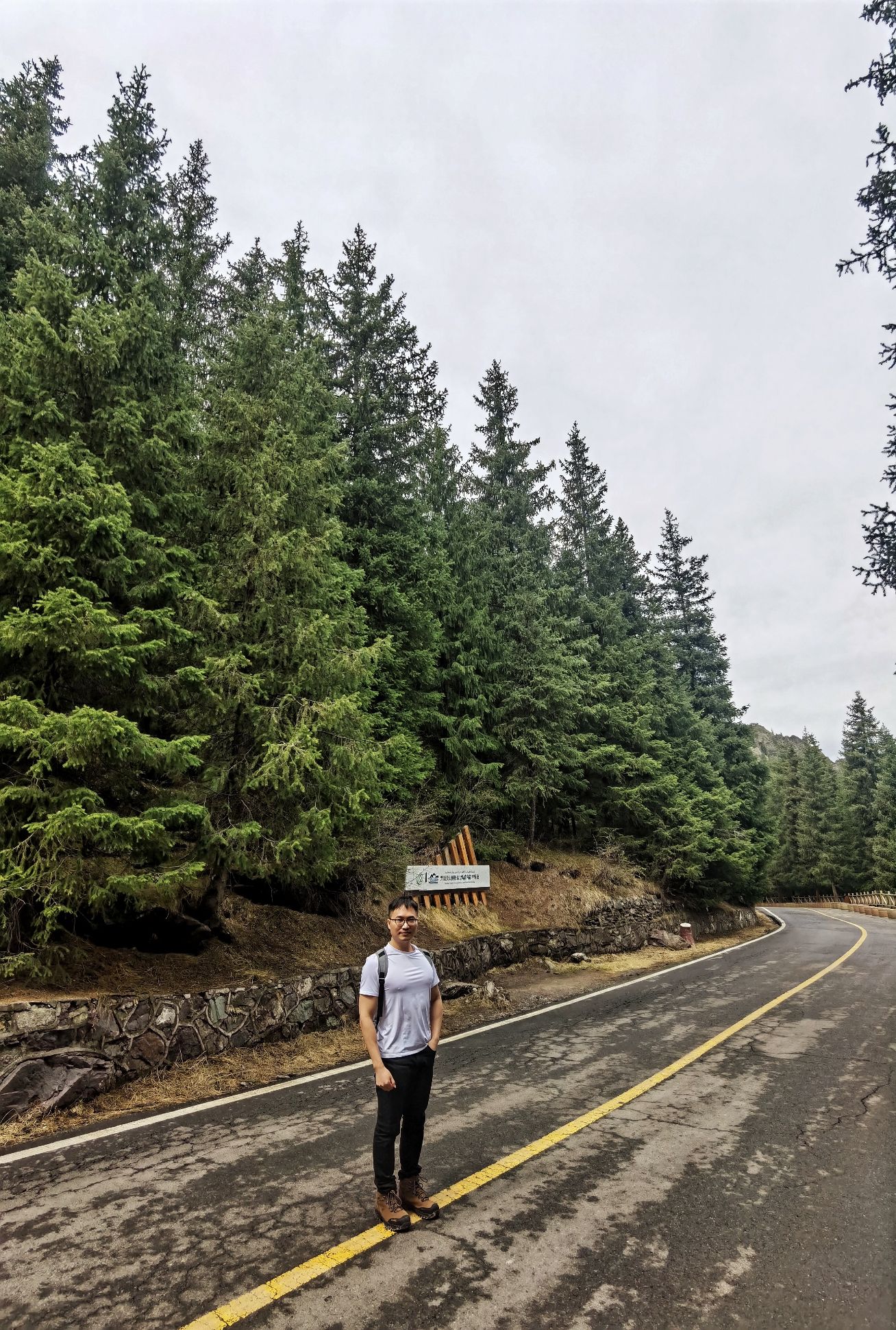 跟去四川海螺沟一样,进入景区大门验票后,需要另外换乘小巴士多开40多分钟上山,经过诸多景点平台到达天池停车场。小巴士盘山而上,绕N多个弯,很多弯都盘旋而上接近360回转,路只是双车道,若非老练司机是绝不敢这样开的。