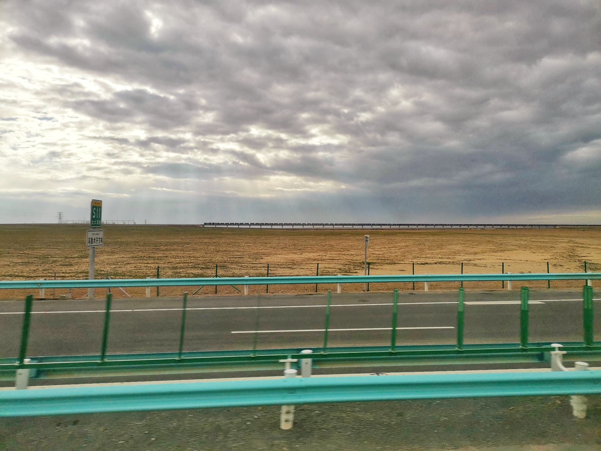 途中看到天边远处的一列火车,应该是拉货或则拉矿的吧