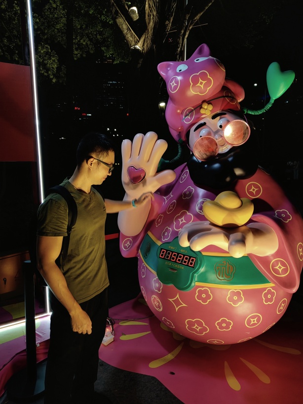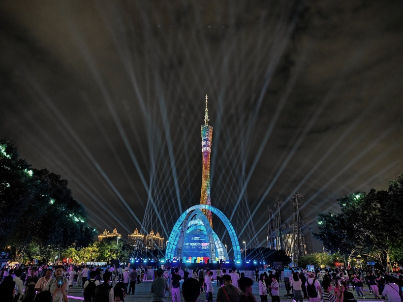 回到花城广场这块大型摆展,这大广场的角度看灯光秀跟广州塔才是最佳位置,这反倒是不用预约。