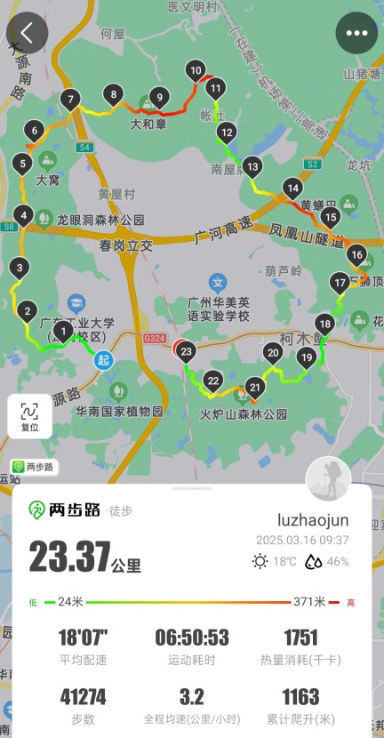 广州龙渔凤火线 昨日下雨才练了腿,不想浪费今日好天气临时选这条线,带着肌肉酸爽起步,一路坚持到了最后 这里攀爬有点难度 又一次路过凤凰山 杓麻山顶风光 洞旗峰顶上的风光 线路轨迹 其他相关文章 漫步绿道登白云 开年徒步画蛇 清明小游之广州雕塑公园 “尼罗河畔的回响”埃及博物展 2018中秋游荔枝湾 2019端午从化游 觉得好可以点个赞! (暂无人赞)Loading...