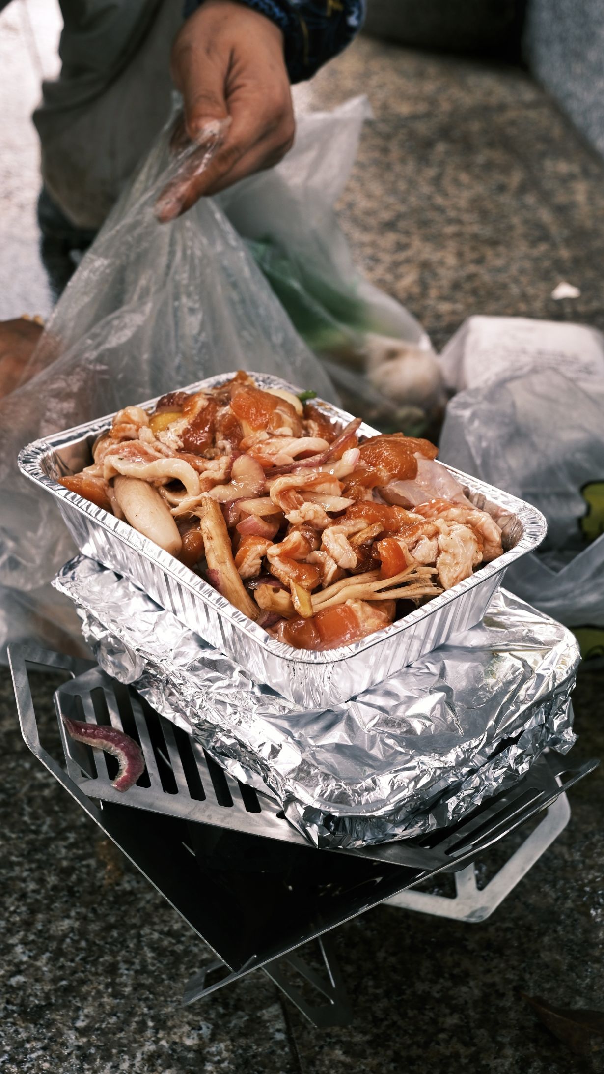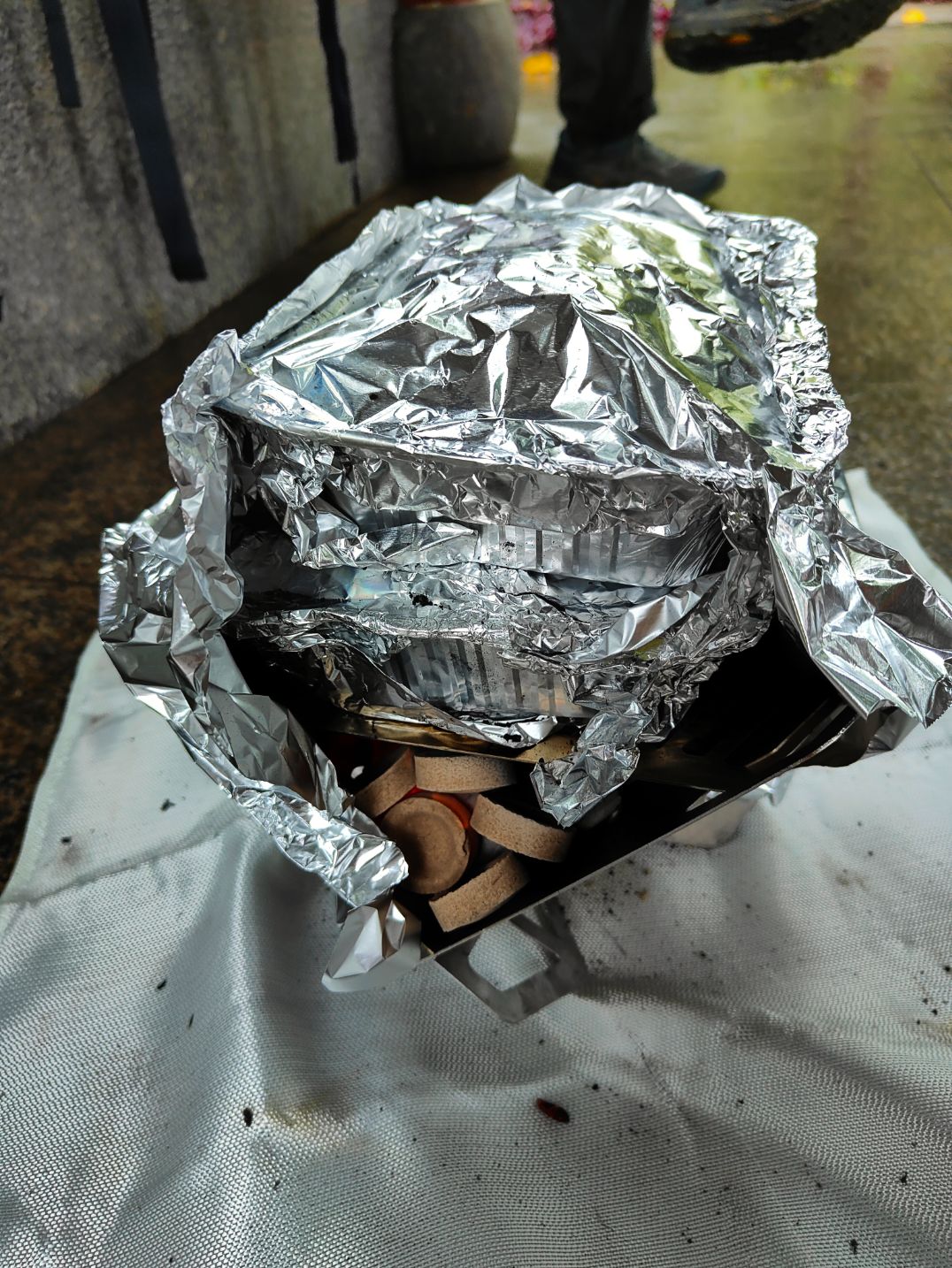 这次腐败积累了一些经验,炭炉虽耐久但火力不够旺,适合烤不适合煮。如果不是为了通过地铁安检,往后绝不推荐。要是自驾之类推荐小型气罐的卡式炉。而后中途我们有疑问,除了炭之外,还有其他固体燃料比如固体酒精(乙醇+醋酸钙),下次可考虑看看。