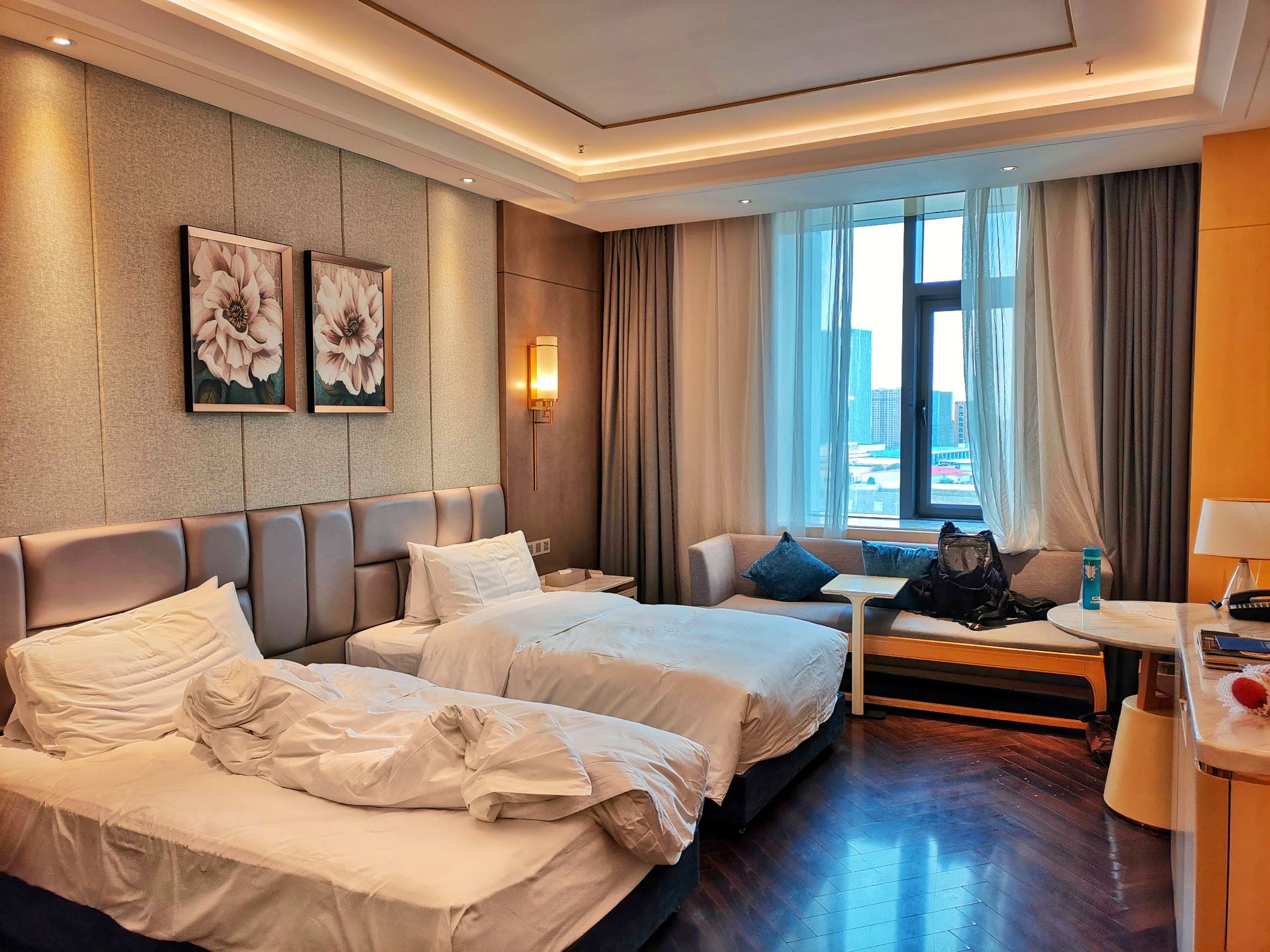 第一晚的酒店由于是在首府的OBOR酒店,就在乌鲁木齐旅游大厦旁,硬件新,档次显得很不错,但对应的服务细节却没跟上,就比如服务总机没写在固话上,卫生间的晾衣处设计不合理,没提供符合国际标准的110V插座,冲凉房的冷水热水扭向居然没标识出来等等,酒店的等级很多时候不是光靠硬件堆砌出来的,做的都是细节功夫。
