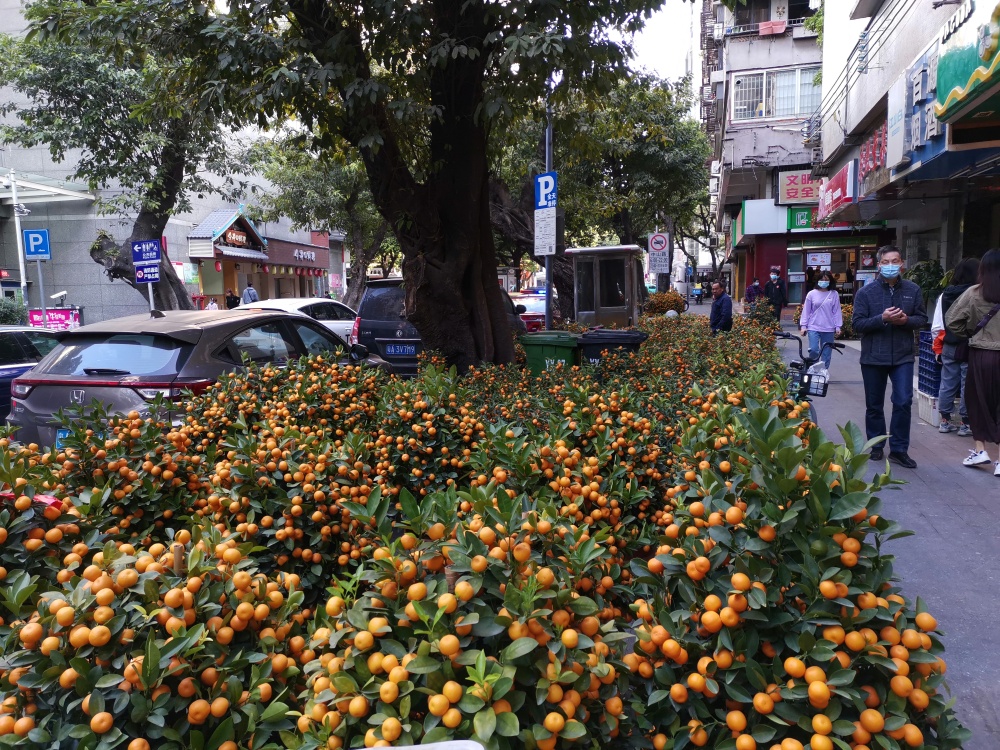 如果是往年各区大型集中花市,亦或封路布场,或则大广场布局,总的也就那么几天。今年分散之后,街巷各个的小花市点早早入场了。我看到最早的年桔是2月4号就摆出来了,其他花种陆陆续续也点缀街巷,随着花品种增多,广州的年味也逐渐浓了起来。