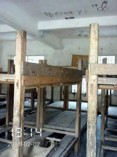 首先是宿舍,女生的宿舍我没去过,而男生的宿舍差不多是在丘陵最高处的一排瓦房,里边都是木架双层床,什么风扇、地板砖之类的就别提了。我2014年的时候还回过去看了一下,依旧那么破,可见当时的落差感是很大的,印象中还记得宿舍同学用家乡话笑着告诉我们,瓦房有些位置下雨天可能会漏水,让我们多注意一下。