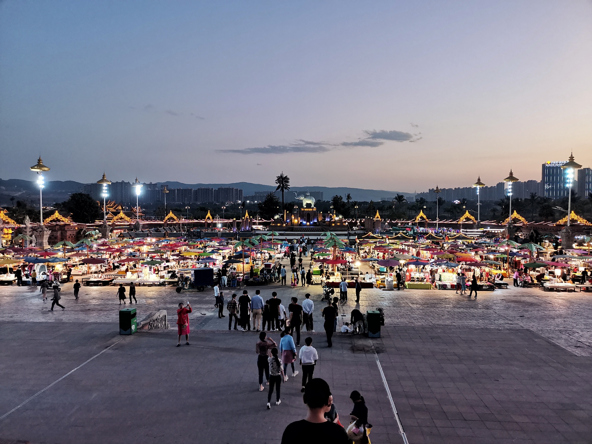 晚饭后就是逛夜市,这旅途终末最后一个自由体验时刻,导游推荐我们可以逛逛告庄夜市,就在“基诺山寨”不远处。我们走过去一瞧,才知道这里的热闹。