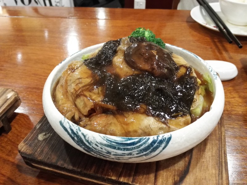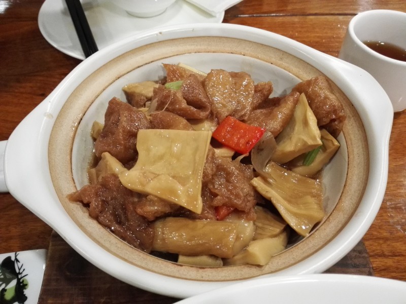 公园边上的斋菜馆,环境幽雅清净,我惊讶于这里的菜式,光看菜名,还真看不出居然是素的……
