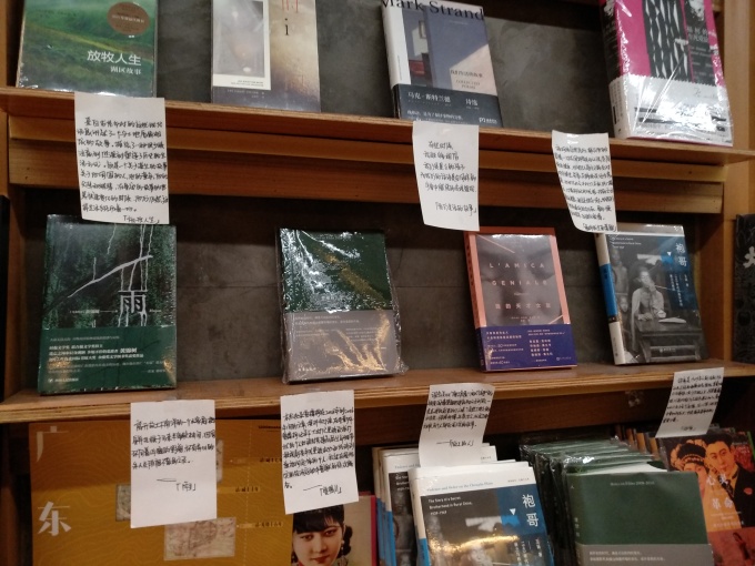 书店装修环境风格比较复古,功能设置上又很新潮,怎么说呢,处处体现了所谓的人文关怀吧。“沙发客”的房间我是没进去了,洗手间旁边的“窥视厕所”看过之后微微一笑!还有一些随机书包,花钱淘了一本你自己不知道的书,或有意外惊喜等等……