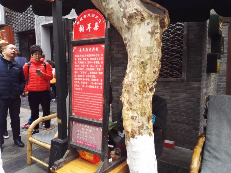 这宽窄巷子的文化底蕴,不单单体现在格局、建筑等外表,即便沦为商业步行街,它的商业形态上也融入了很多历史文化元素,卖吃的是传统巴蜀风味就不说了,就比如茶馆不只是喝茶,还会带川剧表演,街边会时不时有传统掏耳朵的手艺,影楼则是连带化古妆的服务,然后与川剧帅哥美女一起的仿古艺术照,街边小吃,就连卖个糖画的,也是现场用糖浆现场画出来的,这有看,有听,有体验……古街古巷原汁原味,来到这就仿佛瞬间穿越一样。